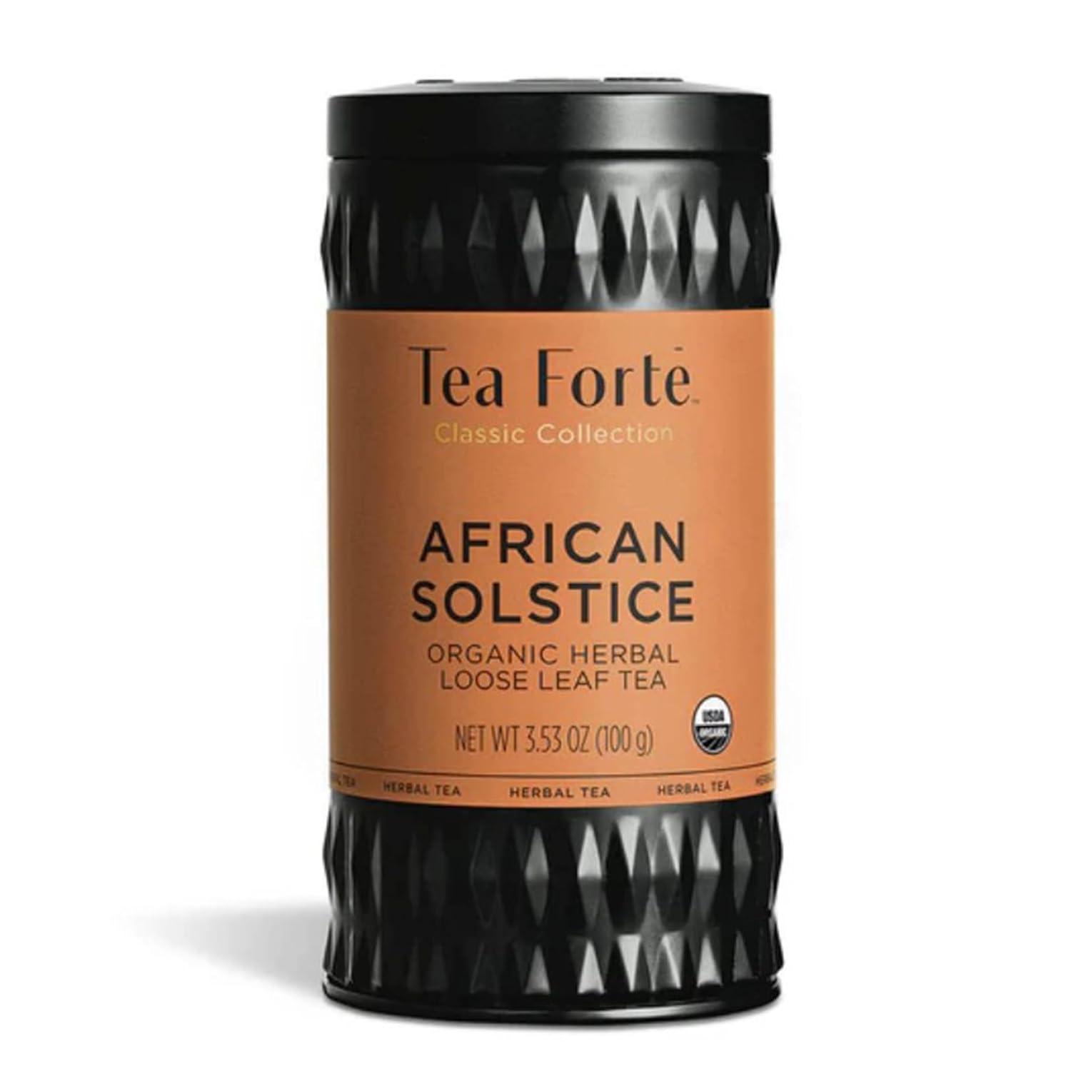 Tea Forte African Solstice Premium Loose Leaf Caffeine-Free Herbal Tea Blend Canister, Makes 35-50 Cups(African Solstice (Round))