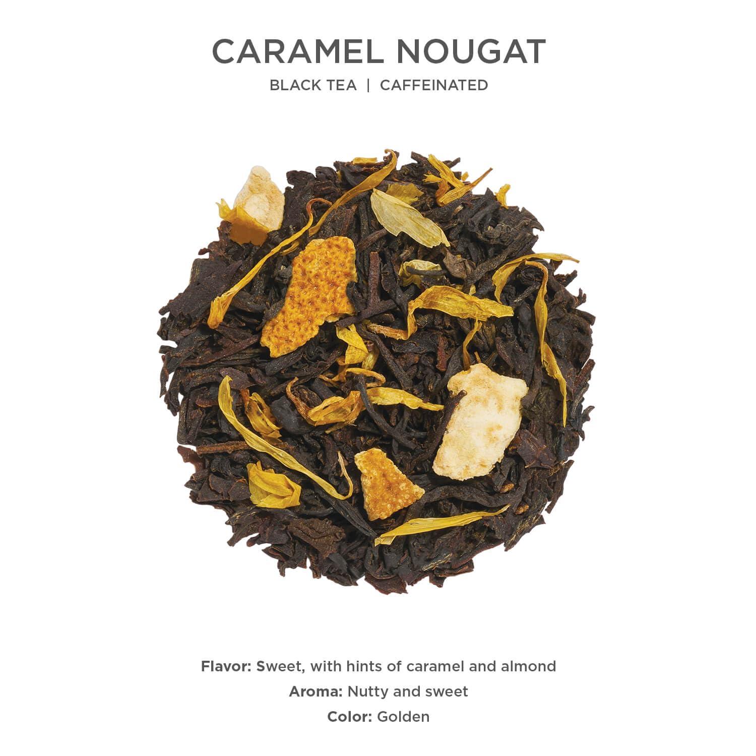 imageTea Forte Black Lychee Premium Loose Leaf Caffeinated Black Tea Blend Blend Canister Makes 3550 CupsCaramel Nougat Round