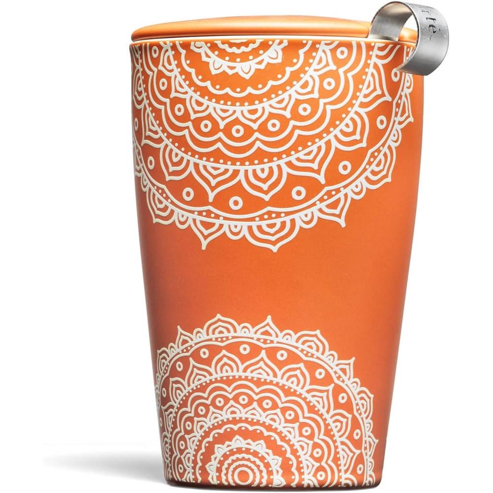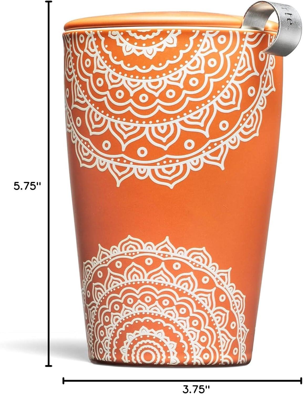 Tea Forte Double-Walled Ceramic Kati Cup, Removable Stainless Steel Infuser Basket and Lid, Steeps 12 oz Loose Leaf Tea, Dishwasher & Microwave Safe, Jubilee(Chakra)