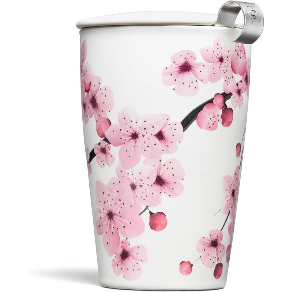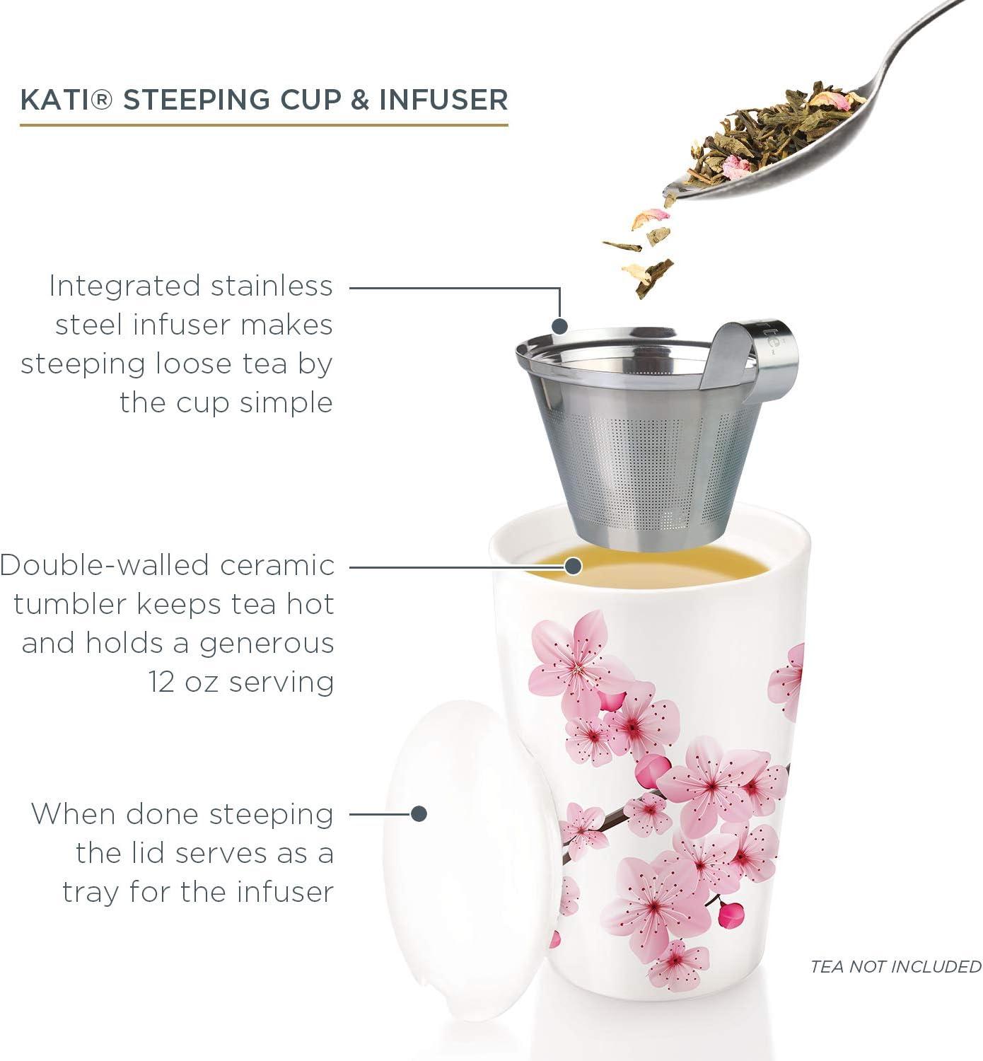 Tea Forte Double-Walled Ceramic Kati Cup, Removable Stainless Steel Infuser Basket and Lid, Steeps 12 oz Loose Leaf Tea, Dishwasher & Microwave Safe, Jubilee(Hanami)