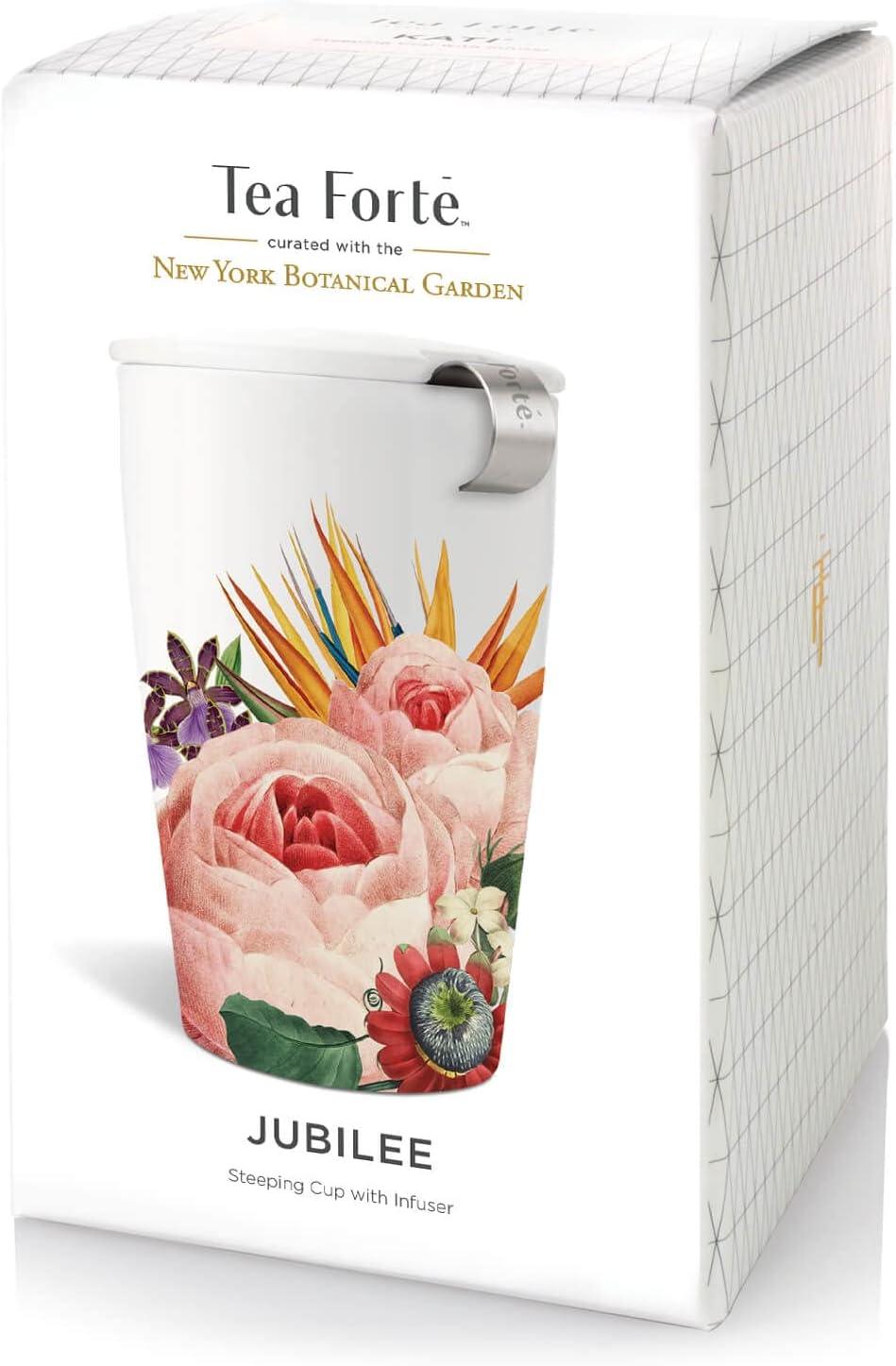 Tea Forte Double-Walled Ceramic Kati Cup, Removable Stainless Steel Infuser Basket and Lid, Steeps 12 oz Loose Leaf Tea, Dishwasher & Microwave Safe, Jubilee(Jubilee)
