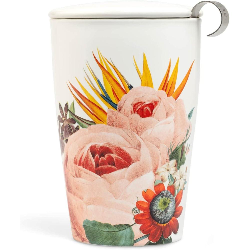 Tea Forte Double-Walled Ceramic Kati Cup, Removable Stainless Steel Infuser Basket and Lid, Steeps 12 oz Loose Leaf Tea, Dishwasher & Microwave Safe, Jubilee(Jardin)
