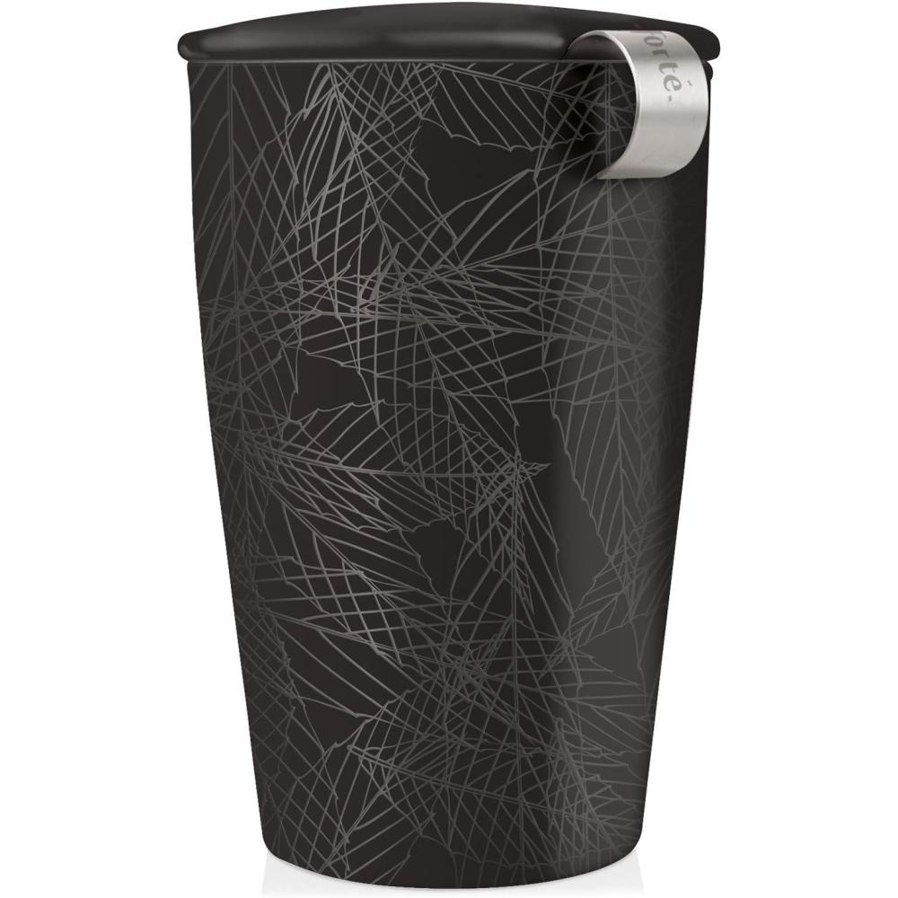Tea Forte Double-Walled Ceramic Kati Cup, Removable Stainless Steel Infuser Basket and Lid, Steeps 12 oz Loose Leaf Tea, Dishwasher & Microwave Safe, Jubilee(Noir)