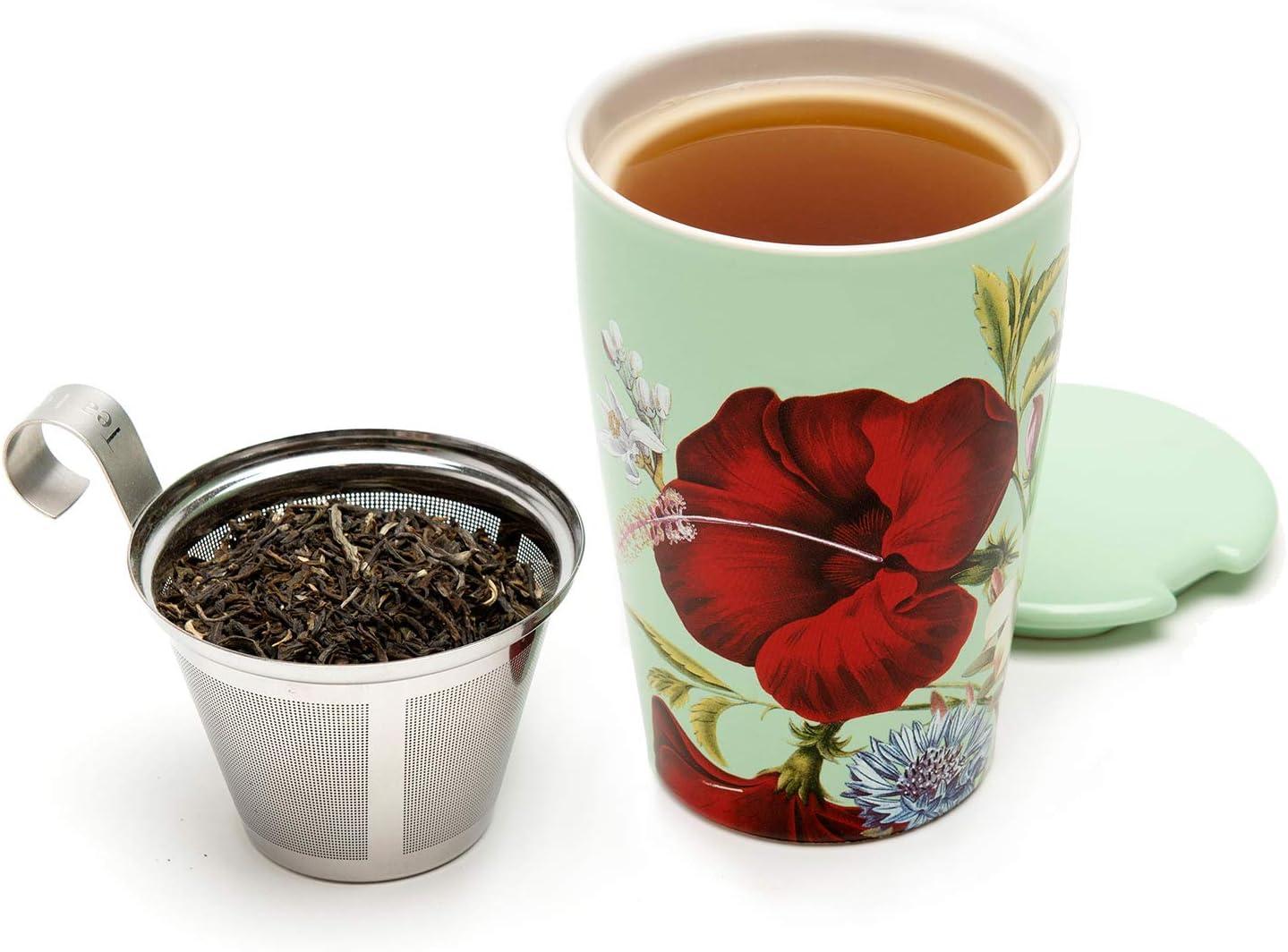 Tea Forte Double-Walled Ceramic Kati Cup, Removable Stainless Steel Infuser Basket and Lid, Steeps 12 oz Loose Leaf Tea, Dishwasher & Microwave Safe, Warming Joy(Fleur)