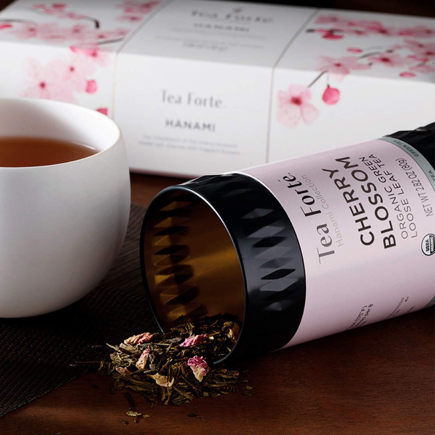 Tea Forte Jasmine Green Premium Loose Leaf Caffeinated Green Tea Blend Canister, Makes 35-50 Cups(Cherry Blossom)