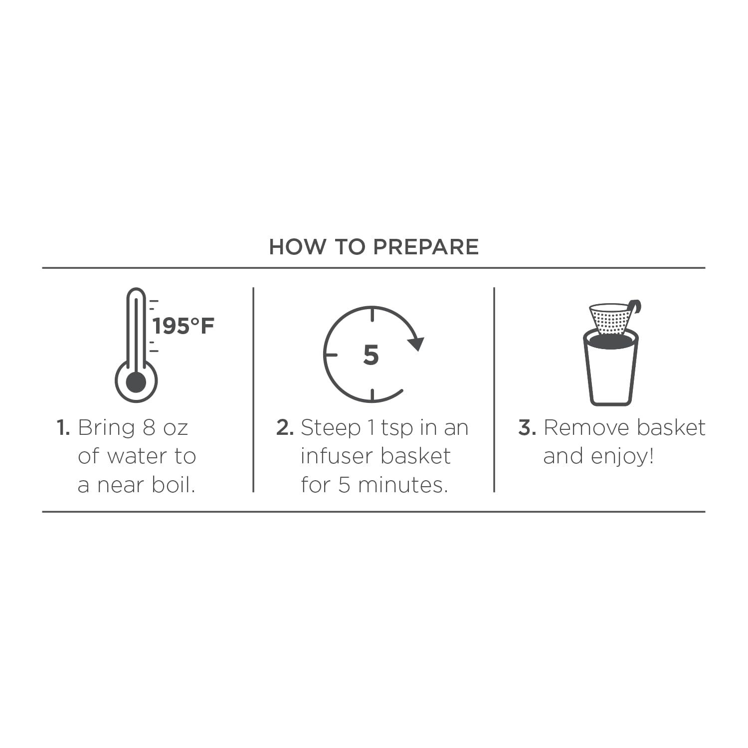 HOW TO STEEP – Measure 1 teaspoon into an infuser basket. Steep the tea in the boiling water for 5 minutes.