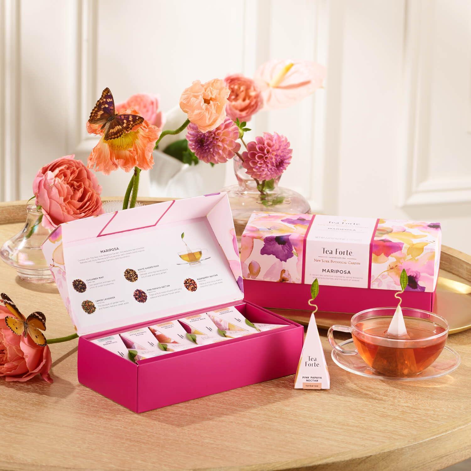 Tea Forte Warming Joy Holiday Premium Petite Presentation Box Gift Set Sampler, 10 Count, 2 of Each Blend Individually Wrapped Handcrafted Pyramid Infuser Bags(Mariposa)