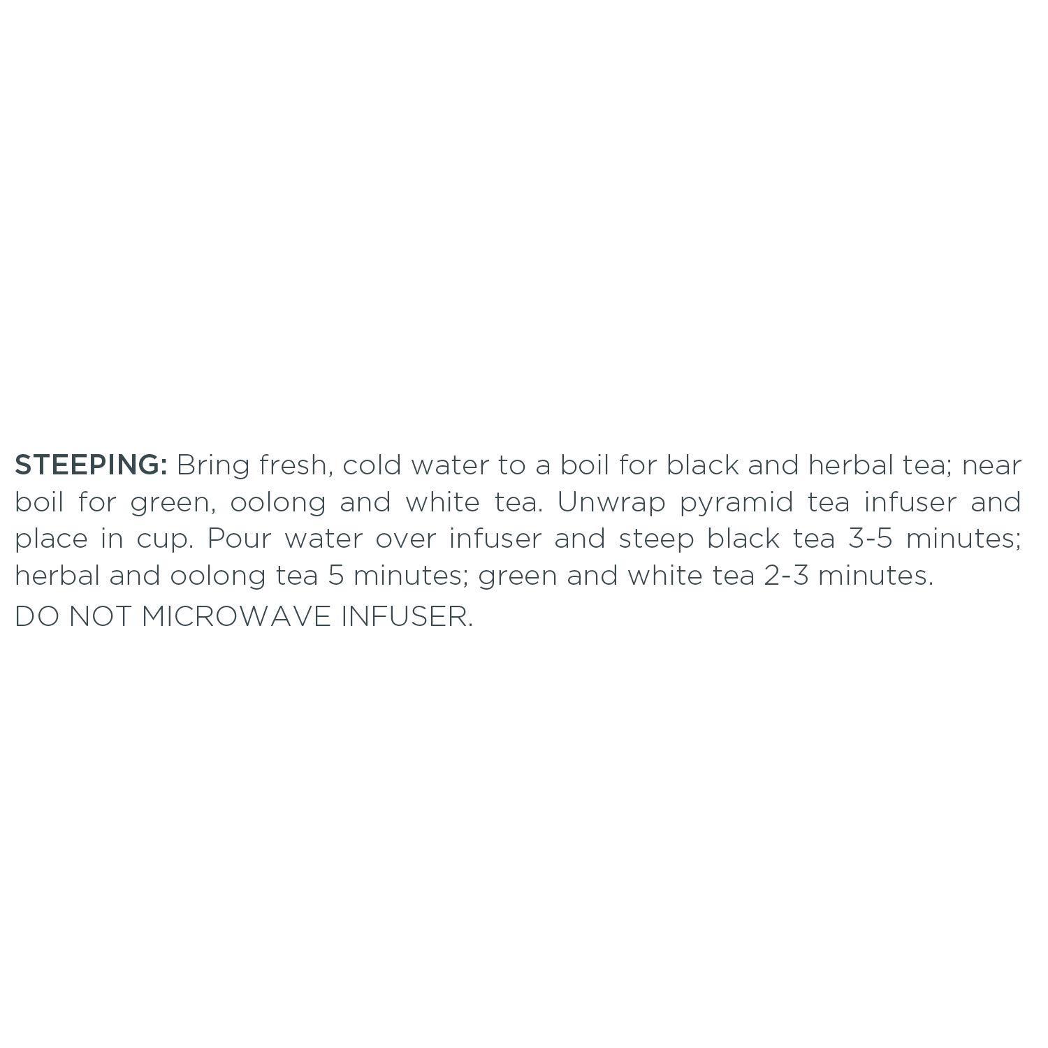 HOW TO STEEP – Unwrap the Pyramid Infuser, place into 8 ounces of boiled water. Pyramid infuser is not microwave safe.