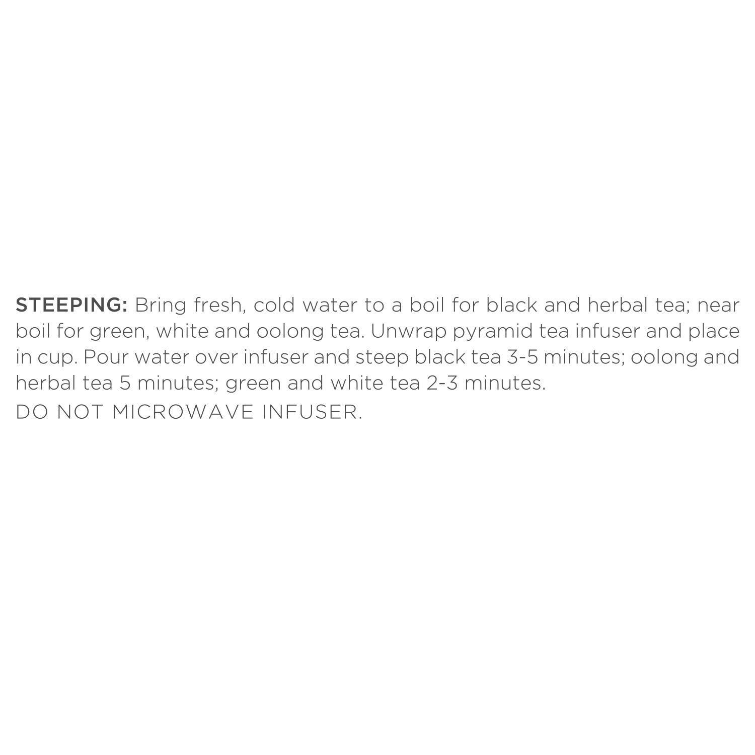 HOW TO STEEP – Unwrap the Pyramid Infuser, place into 8 ounces of boiled water. Pyramid infuser is not microwave safe.