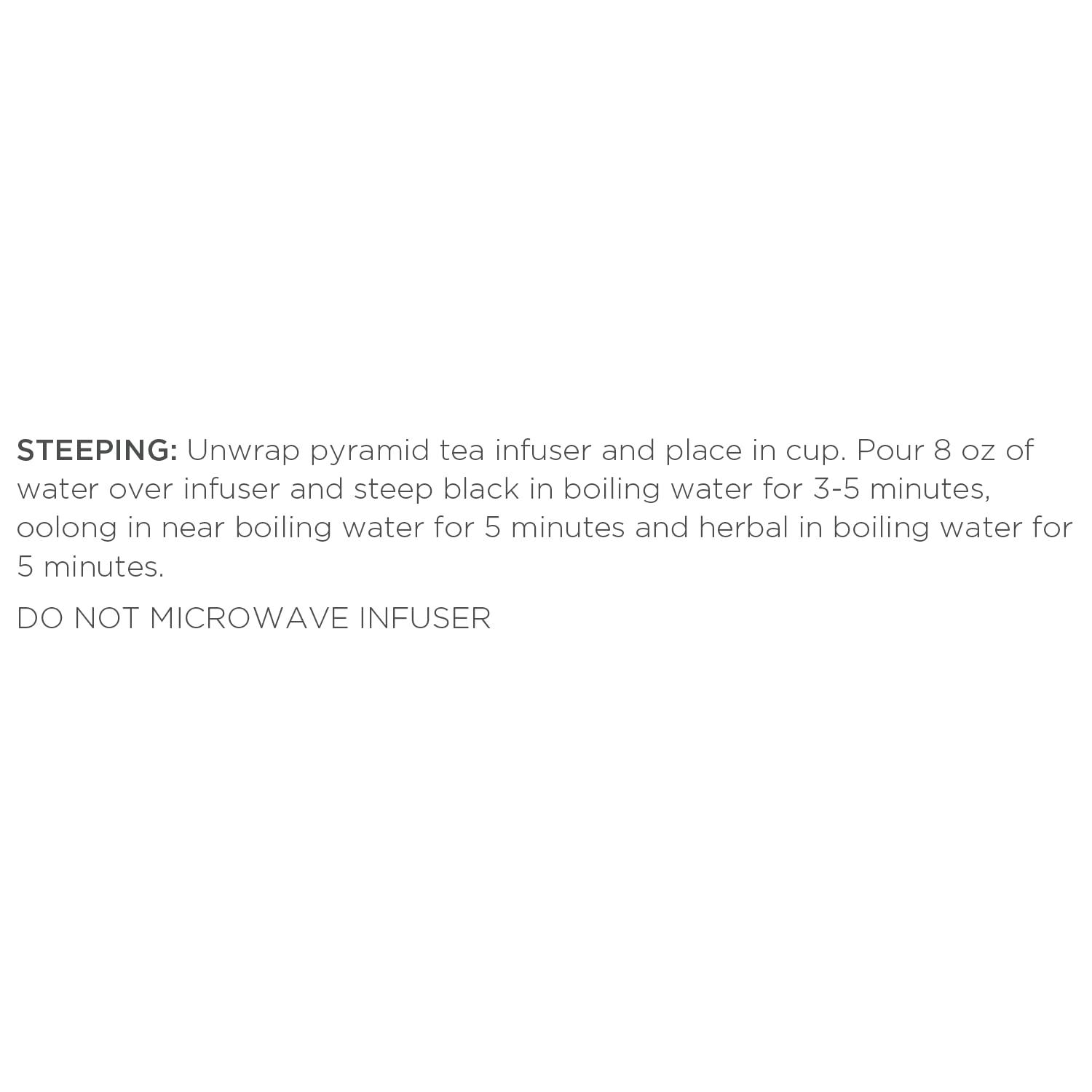 HOW TO STEEP – Unwrap the Pyramid Infuser, place into 8 ounces of boiled water. Pyramid infuser is not microwave safe.