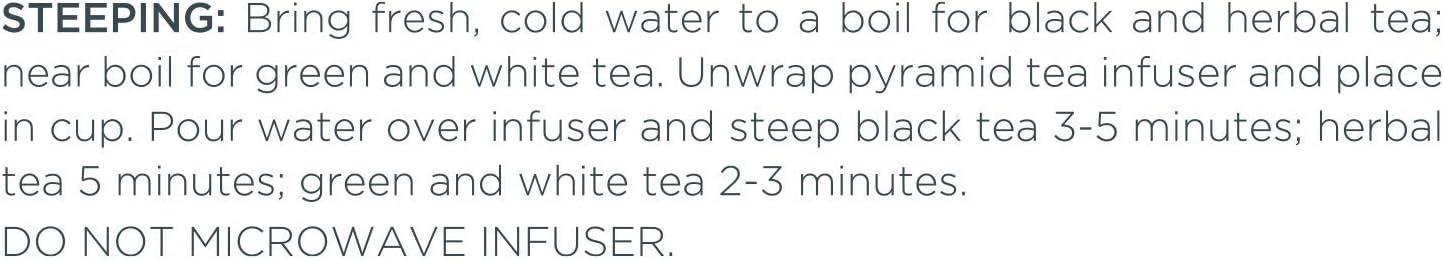 HOW TO STEEP – Unwrap the Pyramid Infuser, place into 8 ounces of boiled water. Pyramid infuser is not microwave safe.