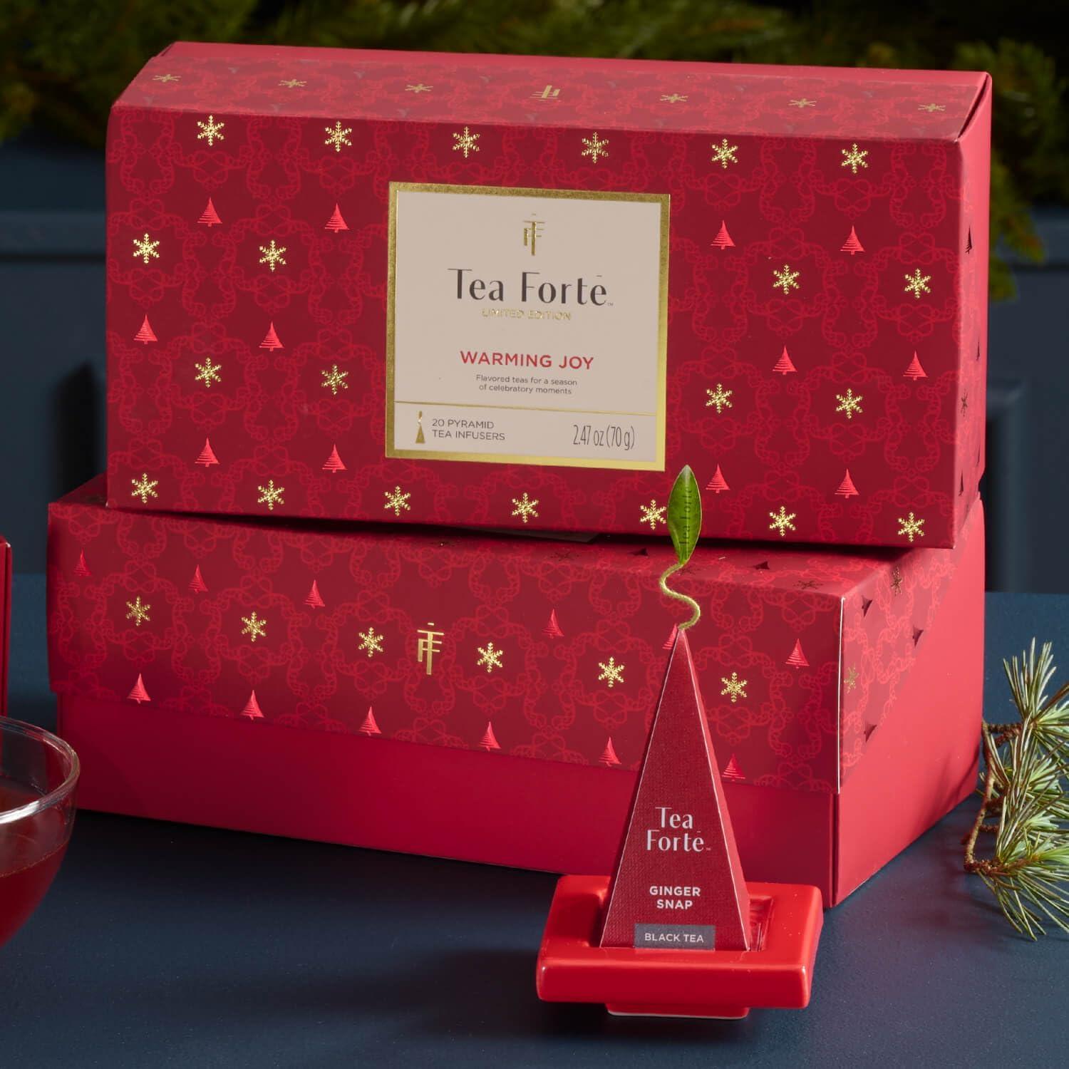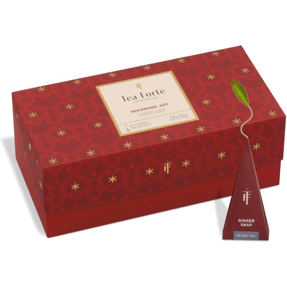 Tea Forte Warming Joy Holiday Premium Presentation Box Gift Set Sampler, 20 Count, 4 of Each Blend Individually Wrapped Handcrafted Pyramid Infuser Bags(Warming Joy)