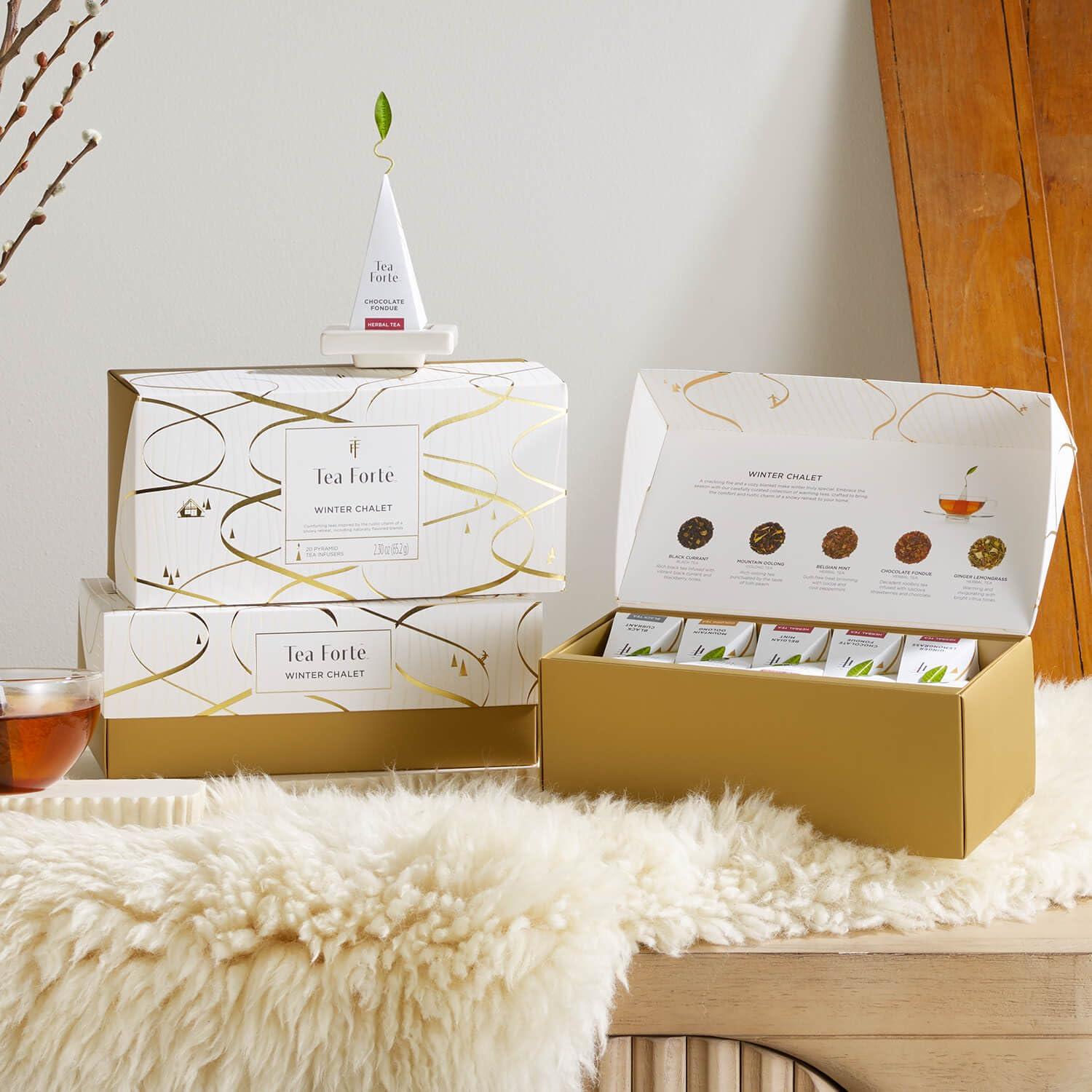 LIMITED EDITION – The Winter Chalet Collection contains cozy teas featuring Tea Forte's signature pyramid infuser tea bag. Perfect gift for a host.
